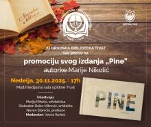 Pročitajte višeJU Gradska biblioteka Tivat organizira promociju svog novog izdanja “Pine”, autorice Marije Nikolić, koja će se održati u nedjelju, 30. 11., s početkom u 17 sati, u Multimedijalnoj dvorani Općine Tivat.