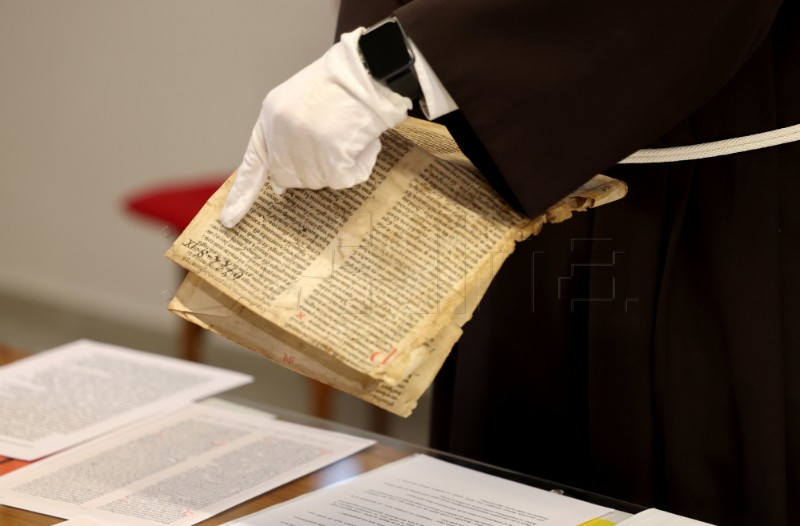 "Uz stotinjak inkunabula koje se nalaze u našim, franjevačkim samostanima, ova je najstarija, a riječ je o fragmentu od samo četiri stranice latinskog teksta Biblije (Vulgate) koja je 1462. godine tiskana u Mainzu u tiskari Johannesa Fusta i Petera Schöffera", kazao je fra Nosić.