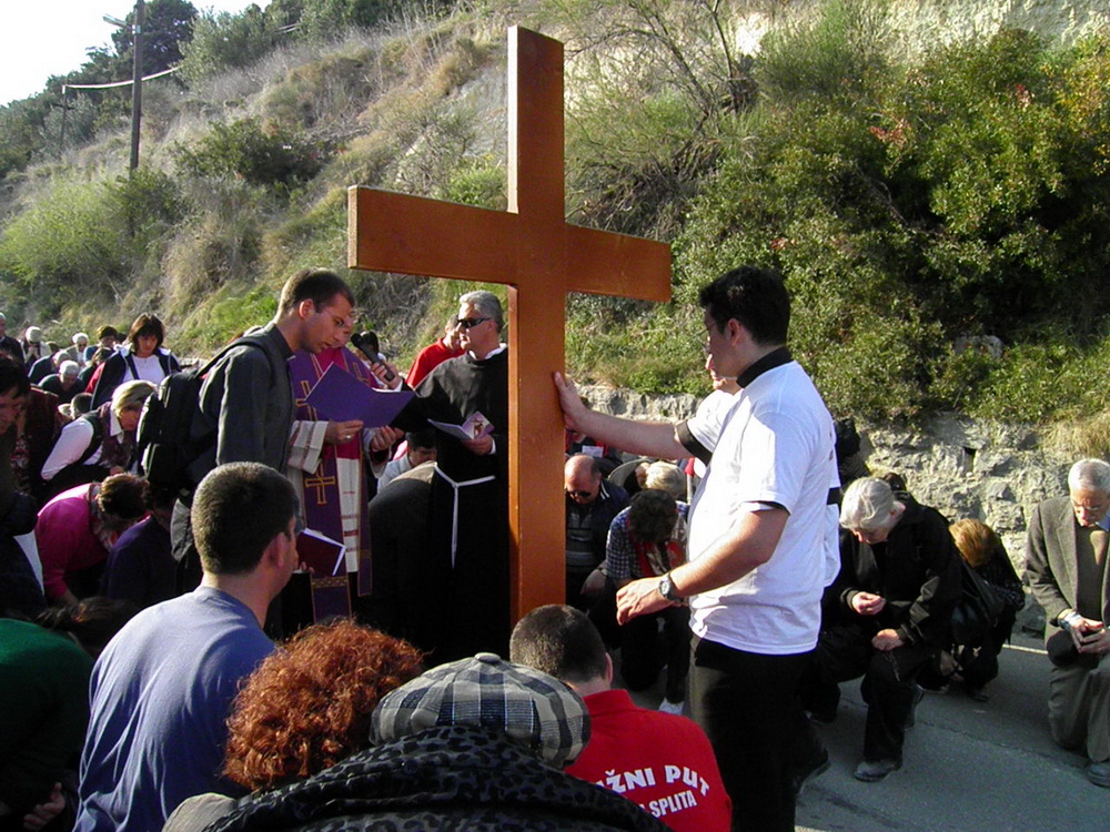 "Iako započinjemo ovu pobožnost križnoga puta ispred crkve Sv. Frane na Obali, možemo kazati da naš križni put ne započinje ovdje nego tamo gdje se osjećamo goli, bosi, stranci, osamljeni, utamničeni, bolesni i napušteni. No upravo tu nam dolazi Gospodin kao suputnik i supatnik da bi nam pomogao nositi križ", kazao je splitsko-makarski nadbiskup Marin Barišić na početku križnoga puta grada Splita, koji se tradicionalno već dvadeset i prvi put održava u petak prije Cvjetnice, a ove je godine upriličen 30. ožujka. "Ovo je marjanski i marijanski križni put, jer po Marjanu pratimo Gospodinov križni put Marijinim osjećajima, srcem i dušom", istaknuo je nadbiskup, započinjući pobožnost križnoga puta koji se još naziva "Od Gospe do Gospe", jer je prije polazio od velovaroške Gospine crkve pa do Gospe od Sedam žalosti. Za križem se uputilo više tisuća vjernika predvođeni nadbiskupom, župnikom župe sv. Stjepana pod Borovima fra Žarkom Relotom i ostalim svećenicima iz samostana te mladima grada Splita, kojima se pridružilo tridesetak mladih iz Kotorske biskupije.