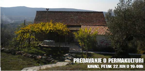 Expeditio Centar za održivi prostorni razvoj organizira predavanje o permakulturi koje će održati u petak 22. lipnja 2012. u Kući slobodne misli u Kavču, Boka Kotorska, u 19:00 sati.