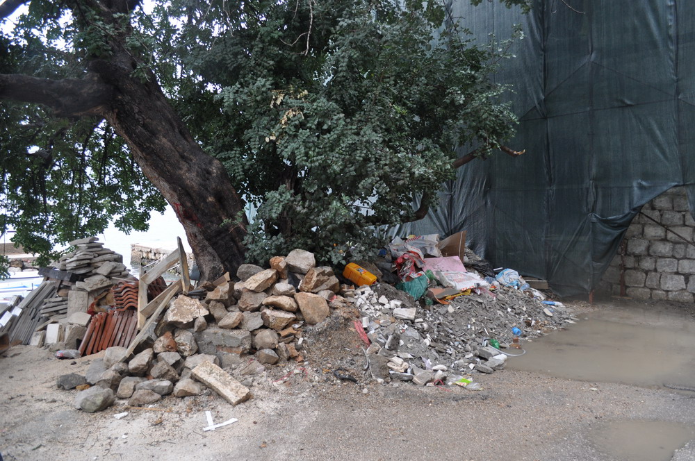 Stari rogač na lastovskoj rivi ovih dana je ugrožen nesavjesnim odnosom izvođača radova iz susjednog objekta koji se rekonstruira.