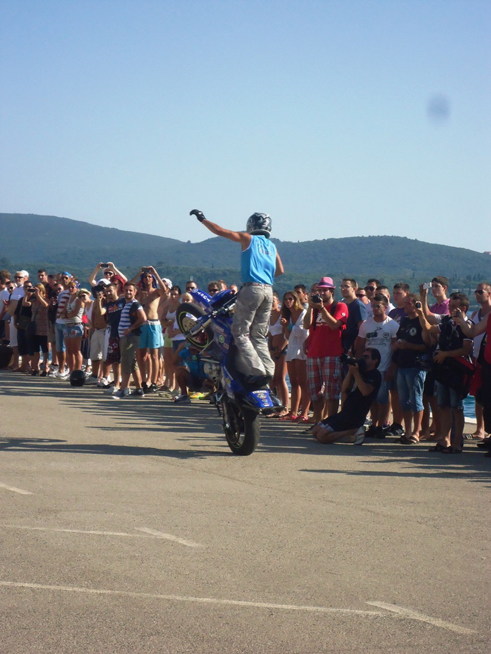 Uslijedila je atrakcija koja se rijetko vidja u regionu i koja je preko hiljadu okupljanenih Tivćana i turista iz svih krajeva svijeta bukvalno ostavila bez daha – nastup mladog hrvatskog moto-akrobate Dejana Špoljara koji je na dva motocikla marke „Yamaha" – njegovog doživotnog sponzora, prilazao sve svoje vještine.