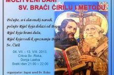 Uoči svetkovine Sv. Ćirila i Metoda, mons. Ilija Janjić, biskup kotorski, svečano će otvoriti i započeti Molitvene dane sv. braći Ćirilu i Metodu, u četvrtak, 4. srpnja, u 20 sati u crkvi Sv. Roka u Donjoj Lastvi,