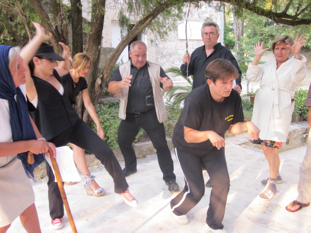 Tijekom praktičnog dijela polaznici su u prostoru imaginarne scene uvježbavali osnovne pokrete i putanje scenskih likova. Sudionici su svakodnevnim vježbama povezivanja djelova scena, vođeni voditeljicom u ulozi redatelja, svladavali djelove zahtjevne scenske radnje povezujući ih u jednu cjelinu. U završnom dijelu praktičnog bloka predavanja izvršen je odabir kostima, scene i odgovarajuće prateće glazbe.