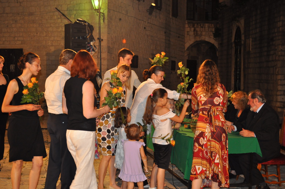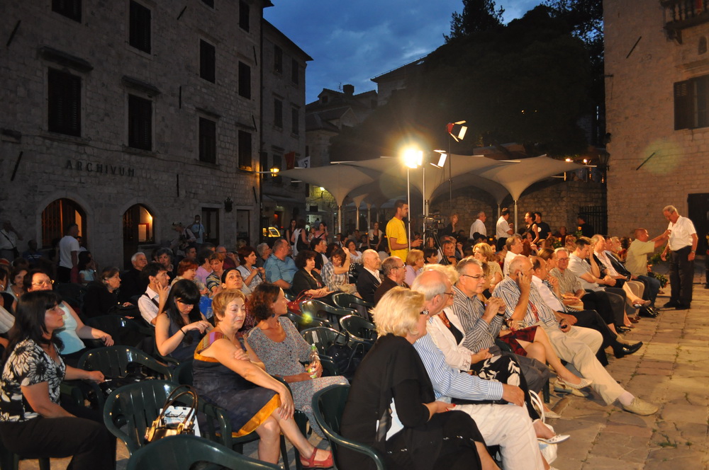 Na trgu ispred bazilike Svetog Tripuna pred brojnim zvanicama, publikom i turistima počasni doživotni admiral Bokeljske Mornarice dr. Miloš Milosevic se zahvalio na upriličenoj večeri a za kraj je kazivao stihove svojih pjesama.