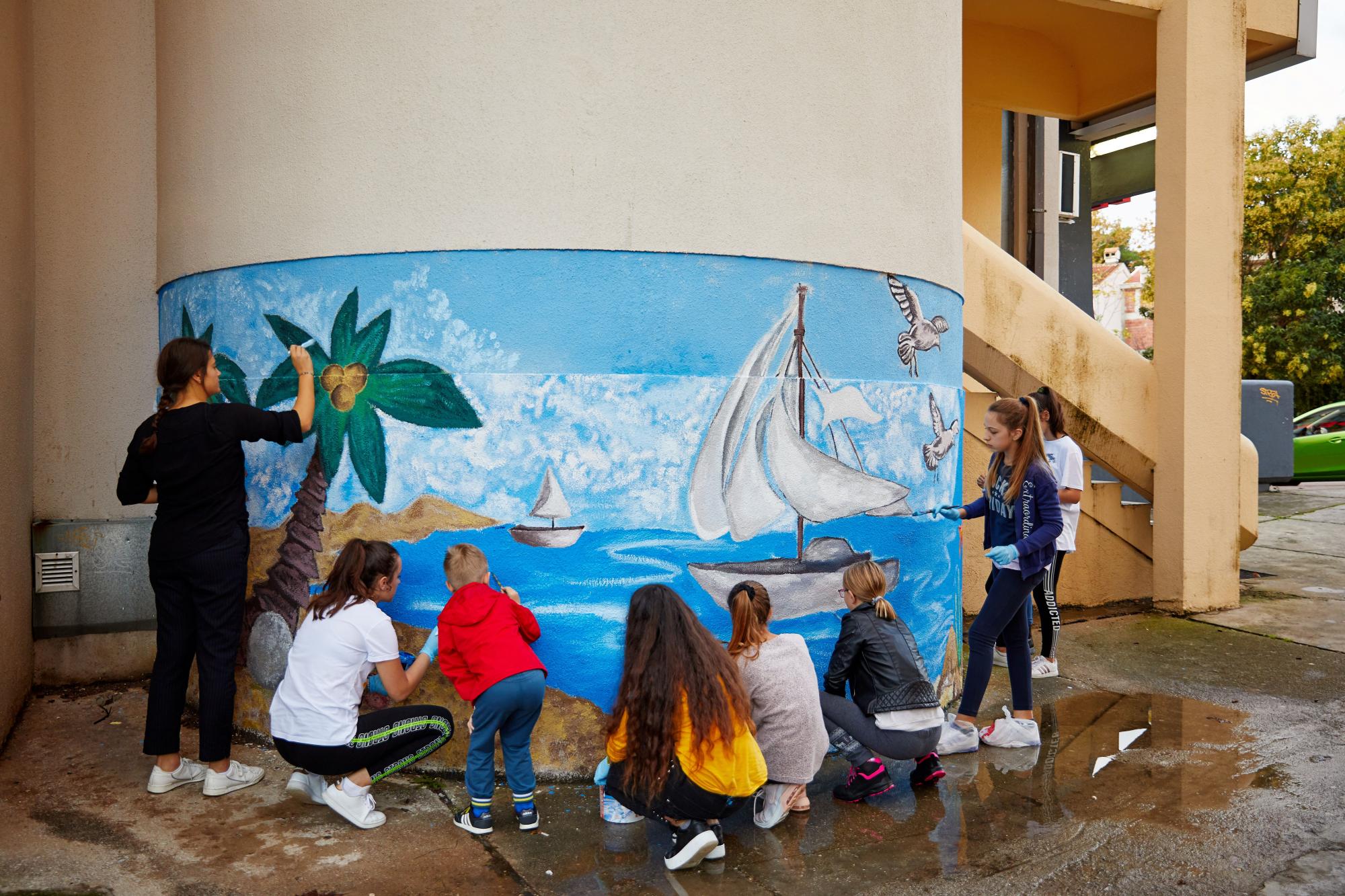 Članovi Dječjeg saveza Tivat u sklopu kreativno likovne radionice oslikali su zid u Ulici Luke Tomanovića u centru grada, s motivima primorskog pejzaža - projekt je realiziran pod mentorstvom akademskog slikara Zorana Krute i profesorice likovne kulture Milice Krivokapić, a financiran od strane Porto Montenegra.