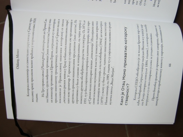 - hodam, tako Trgom sv. Nikole, uppps, pardon Pravoslavnim trgom u Kotoru i odem na rakijicu u Srpski palac ili Vladičanski dom koji je krajem 19. stoljeća, piše u nedavno nagrađenoj knjizi "Otac Momo", izgradila srpska kotorska gospoda, a danas je eto glazbena škola.