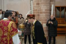 Nakon podizanja svečevog stijega, uz pratnju Gradske muzike Kotor, koja je svirala Kolo sv. Tripuna, okupljeni su se vjernici uputili u katedralu te je održana molitva i otpjevan himan pred svečevom relikvijom – Slavnom glavom, kojoj su se vjernici poklonili.