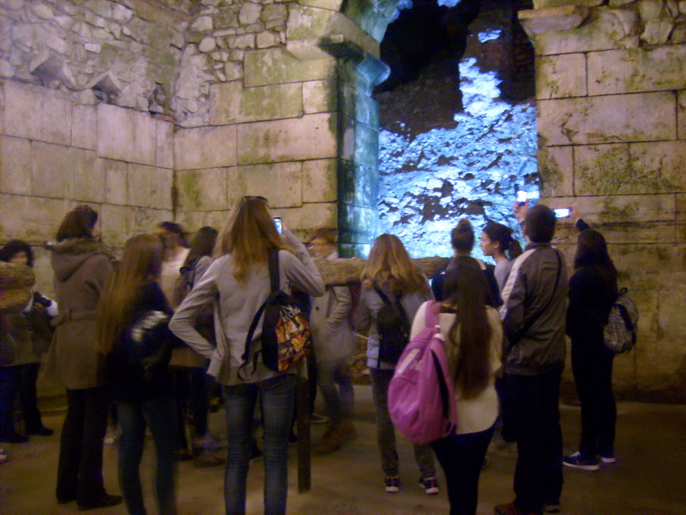 Drugoga dana obišli smo Muzej Ivana Meštrovića gdje nas je kustos upoznao s Meštrovićevim djelima. Vidjeli smo na stotine skulptura, crteža i slika ovoga velikog majstora, ali najviše pozornosti kod učenika izazvala je ekspresionistička skulptura koja na vjerodostojan i krajnje realan način prikazuje bol i patnju starozavjetnoga pravednika Joba. Uz pratnju vodiča, u Starome gradu u Splitu obišli smo podrume rimskoga cara Dioklecijana koji je vladao u 3. stoljeću i ostatke palače iz kojih je nastao današnji Split. Čuli smo mnoge zanimljive činjenice povezane s Dioklecijanovom vladavinom, a njegovi podrumi koje je dao izgraditi da bi na simboličan način bio iznad ostalih, oduševili su svakoga od nas. Vidjeli smo i predvorje nekadašnje palače, Dioklecijanove odaje, kao i sfingu na Peristilu za koju se vjeruje da ju je Dioklecijan donio iz Egipta. Ono što je posebno bilo zanimljivo učenicima još je jedno djelo Ivana Meštrovića – monumentalna skulptura Grgura Ninskog koji se borio za to da se mise održavaju i na staroslavenskome jeziku kako bi običnome puku bile razumljive. Prema lokalnome vjerovanju, svakomu tko dodirne njegov nožni palac ispunit će se želja, te se učenici nisu ustručavali i po nekoliko puta provjeriti ovu legendu.