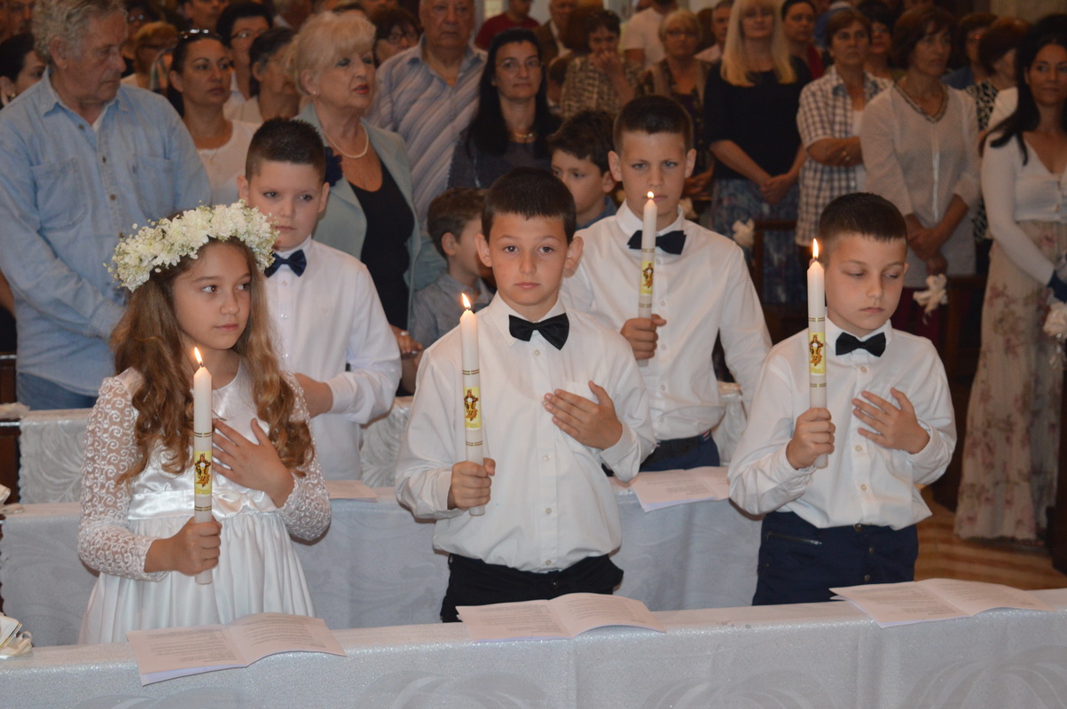Sakrament Svete pričesti podijelio je fra Filip Karadža koji je svoju propovijed posvetio jučerašnjim slavljenicima: „Danas će vaše krštenje dobiti jednu puninu, time što ćete primiti tajnu Svete pričesti. Pod prilikom kruha i vina mi ćemo se pričestiti i time se sjediniti s njime. Jer jedna drevna izreka kaže: Čovjek je ono što jede“. Mi kada jedemo tijelo Kristovo, kada primamo Svetu Pričest, postajemo jedno s onim koji je u toj pričesti. Time što smo primili Isusa Krista, mi pokazujemo svoj identitet, da smo Isusovi učenici, da smo kršćani.