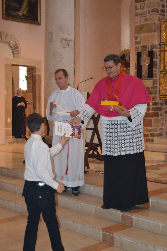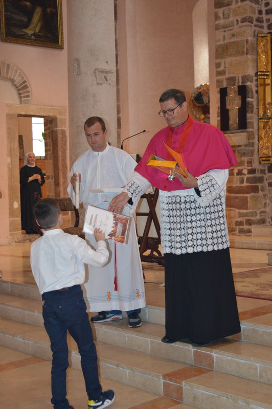 „Dragi prvopričesnici, vi ste najljepši dar ove katedrale u godini njenog jubileja. Kada govorimo o našoj katedrali onda ističemo njenu starinu, njenu romaničku arhitekturu, bogatstvo njene riznice, ljepotu njenog oltara i zlatne oltarske pale. A koliko je samo bilo generacija prvopričesnika pod svodovima ove katedrale. Mi gradimo crkve da bi one izgrađivale nas, i pripremale za djecu, i podsjećale nas da nas ima. Dragi prvopričesnici, ponesite ovaj dan u život i imajte na pameti da ste dar ovoj Katedrali za njen 850. rođendan“.