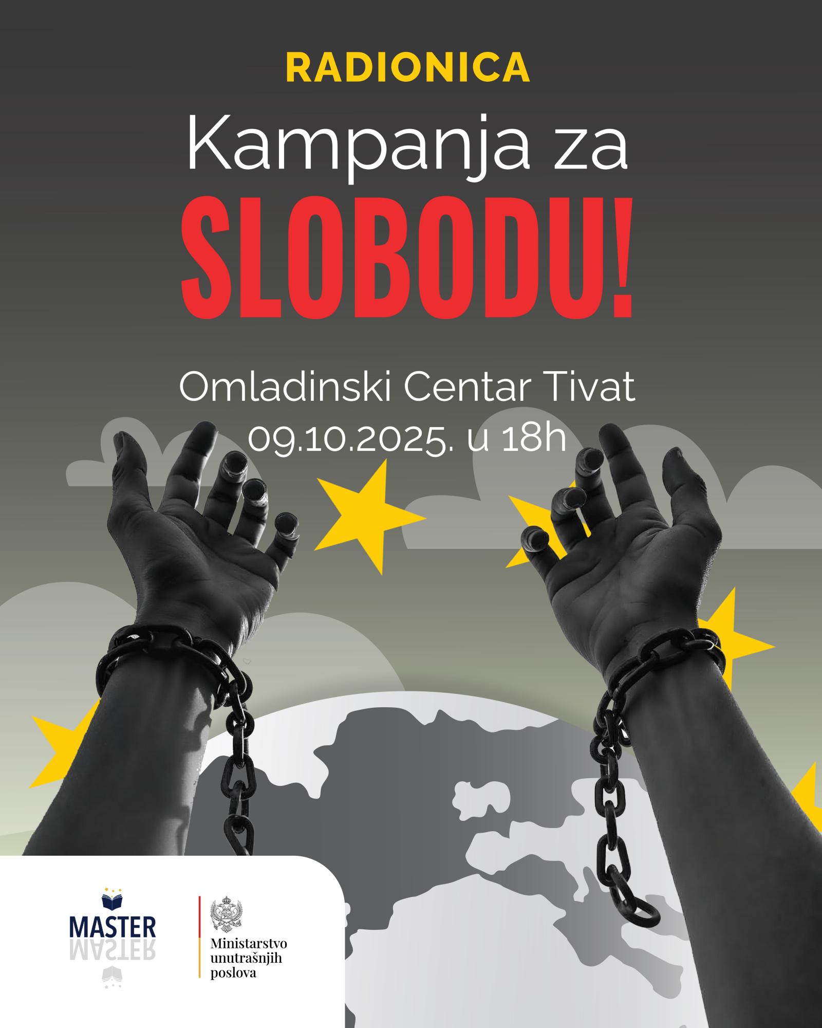Mreža za europske politike – MASTER, uz podršku Ministarstva unutrašnjih poslova, realizira projekt „Kampanja za slobodu“, posvećen podizanju svijesti i jačanju znanja mladih o problemu trgovine ljudima.