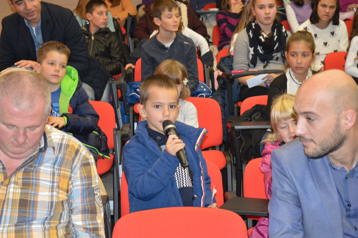 Djeca su na duhovit i simpatičan način postavljala pitanja, među kojima su bila neka od izuzetne važnosti za obrazovanje djece u Tivtu i pripadnike manjinskih naroda.