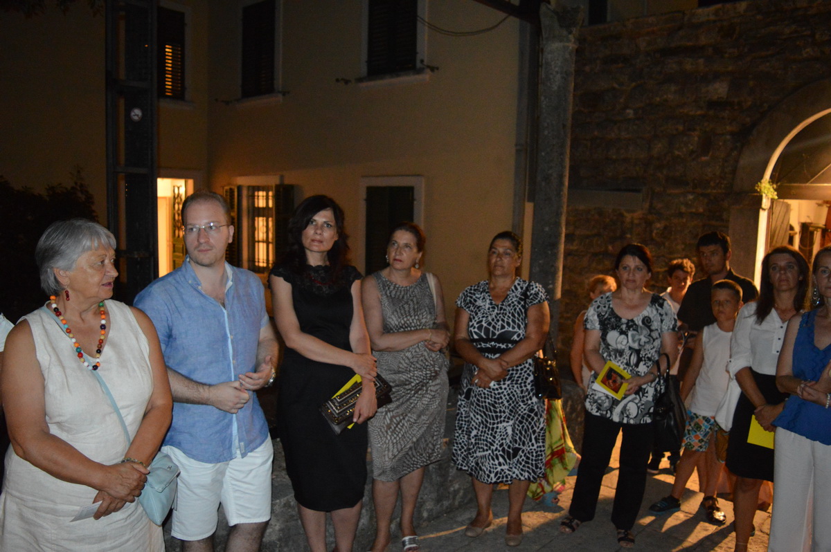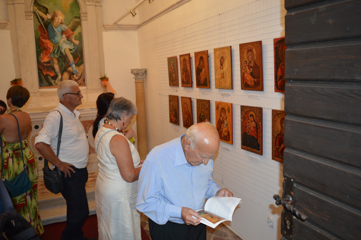 Izloženo je 30 ikona, rađenih prema originalnim verzijama, a izložbu je otvorila predsjednica Općine Tivat dr. Snežana Matijević: „Ikone nam večeras prenose magiju zaliva, pričajući umjetničku istoriju ovog prostora na jedan drugačiji način. Osim izvanredne ljepote, ova izložba ima i svoj edukativni karakter“.