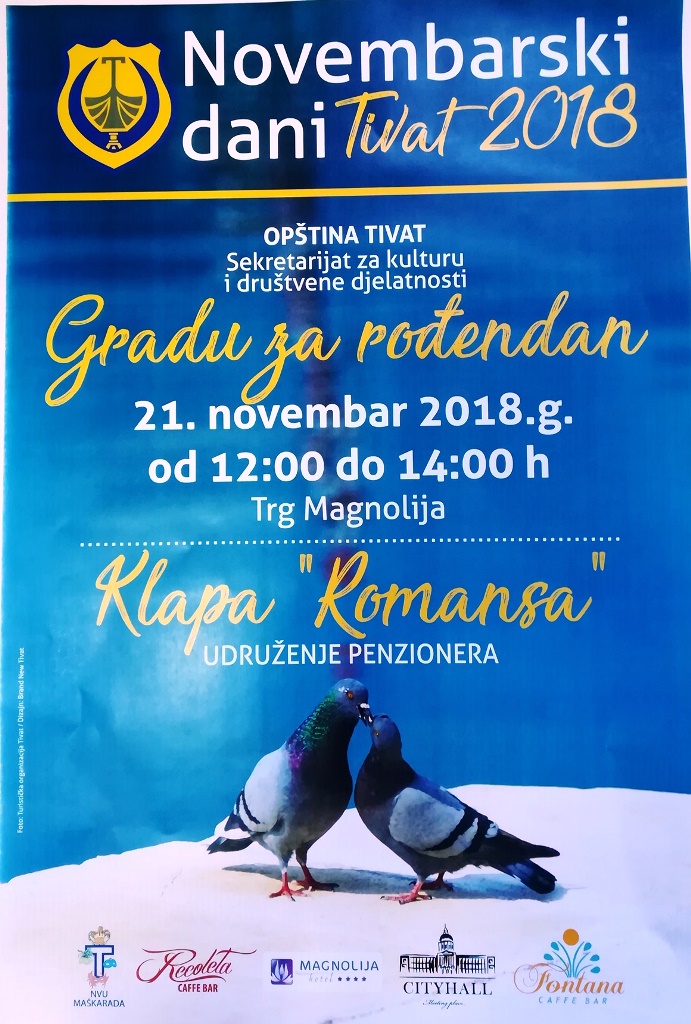 U okviru „Novembarskih dana“, od ponedjeljka, 19.11., do petka, 23. 11., u organizaciji Sekretarijata za kulturu i društvene djelatnosti, mlade i sport i drugih institucija Općine Tivat bt iće organizirano 18 događaja, uključujući izložbe, koncerte, sportske i turističke manifestacije.