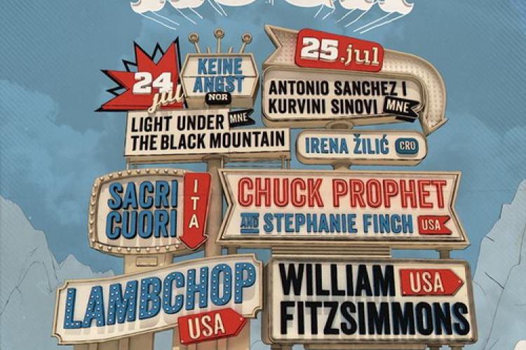 24. i 25. srpnja na Ljetnoj pozornici u Kotoru, s početkom u 20:15 sati uživat ćete uz legendarni alt - country bend Lambchop, kalifornijskog rokera Chuck Prophet-a i kantautora William Fitzsimmons-a, a osim njih će nastupiti i talijanski bend Sacri Cuori, mlada hrvatska kantautorka Irena Žilić, norvežani Keine Angst, kao i crnogorski bendovi Light under the Black Mountain i Antonio Sanchez & Kurvini sinovi.