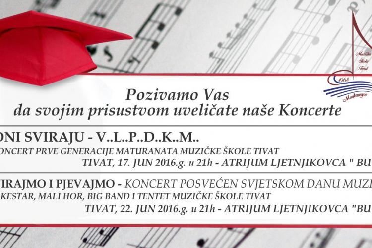 U Atriju ljetnikovca Buća u Tivtu, u petak, 17. lipnja, s početkom u 21 sat bit će održan koncert prve generacije maturanata Muzičke škole Tivat, pod nazivom „Oni sviraju – V..L..P..D..K..M..“