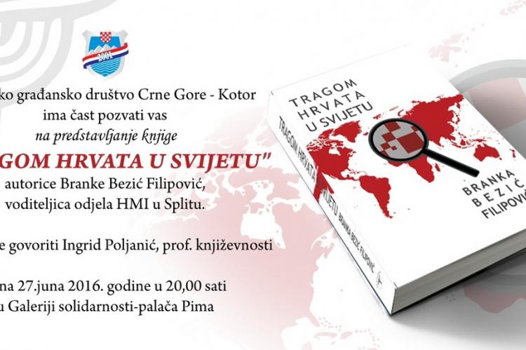 Hrvatsko građansko društvo večeras organizira promociju knjige „Tragom Hrvata u svijetu“, autorice Branke Bezić Filipović, voditeljice odjela HMI u Splitu.
