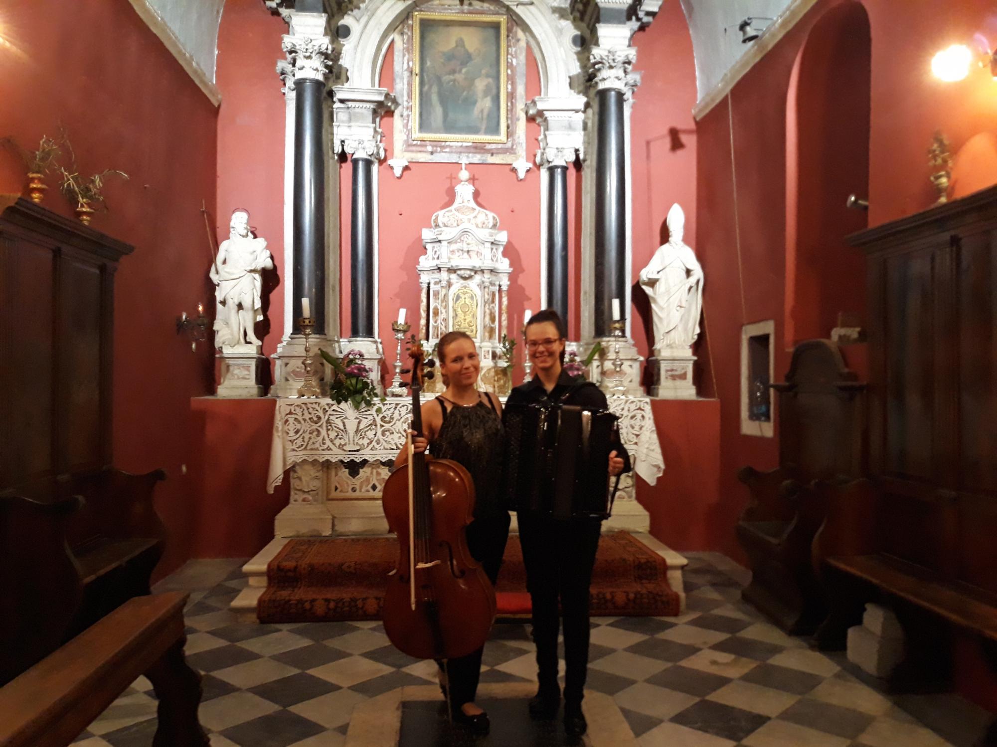 Crkva sv. Nikole, u samom centru Perasta , bila je mala da primi sve zainteresirane ljubitelje klasične glazbe, a sam doživljaj umjetnosti upotpunio je ambijent crkve s vrijednim baroknim oltarom venecijanskog podrijetla, iz 17. stoljeća. Publici su se predstavili mladi glazbenici, polaznici radionica za gudače koji vrijedno rade tijekom devet dana trajanja Festivala. Nastupili su: trio violončela Mia Ristelić, Andrea Čulić i Anastasia Petrova studentice iz Beča, duet violončelo - harmonika, Maike Clemens i Marija Antunović, također iz Beča, Boško Tujković na harmonici iz Kotora i mlada Miona Topalović violinistica i dobitnica brojnih nagrada iz Beograda. Perast je prošle večeri oživio duh starih vremena i sjaja koji je stekao upravo u vrijeme kada je Johan Sebastijan Bach stvarao svoja remek djela čiji smo mali dio mogli čuti u interpretaciji talentiranih mladih glazbenika.