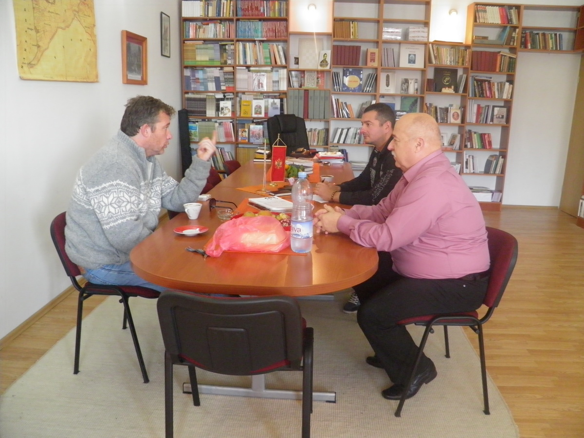 Jučer je u posjet Hrvatskom nacionalnom vijeću Crne Gore bio doc. dr. Andrija Petković, fakultetski profesor iz Tivta, koji predaje na Fakultetu za mediteranske poslovne studije. Njega su u prostorijama Tajništva primili predsjednik Zvonimir Deković i član Vijeća Adrijan Vuksanović. Oni su mu predočili uspješno realizirane projekte, kao i one na čijem se realiziranju marljivo radi. Također, upoznali su ga i s obrojnim aktivnostima koje se sprovode u novoobnovljenom Domu kulture Josip Marković.
