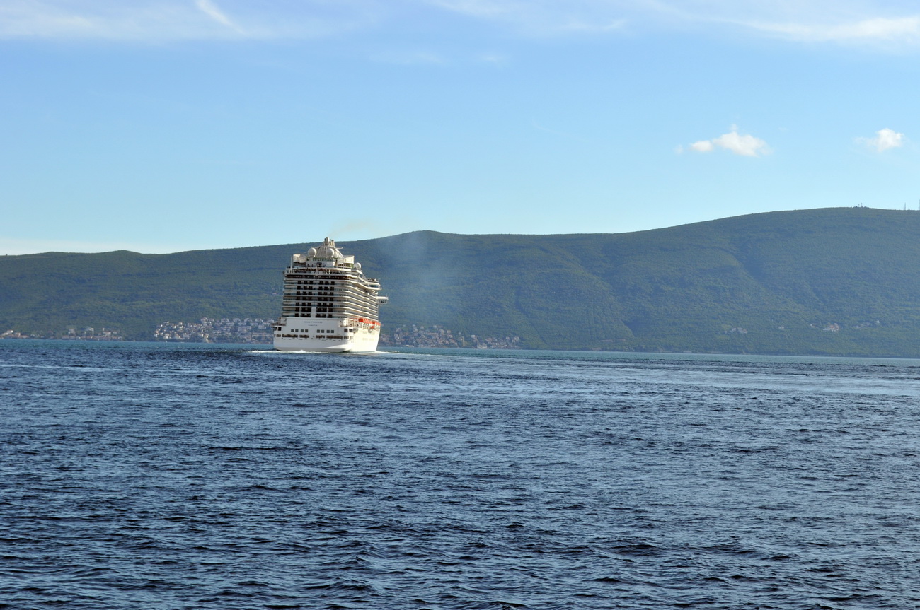 Rajko Čavor: Jeste. Okrenuli smo ga ispod Kotora, jer smo morali prepustiti sidrište Splendor of the Sea- u, tako da smo maksimalno iskoristili vrijeme, pa su i članovi posade i gosti mogli vidjeti Kotor. Kad se dođe na sidrište broj 2, to je 1,8 milja smo daleko od Kotora, a Kotor možete doživjeti samo ako ste mu što bliže, zato sam i odlučio sa kapetanom da stanemo ispred samoga Kotora. Možete zamisliti kakav je pogled prema Kotoru s 19 spratova visine. Poslije smo ga morali vratiti.